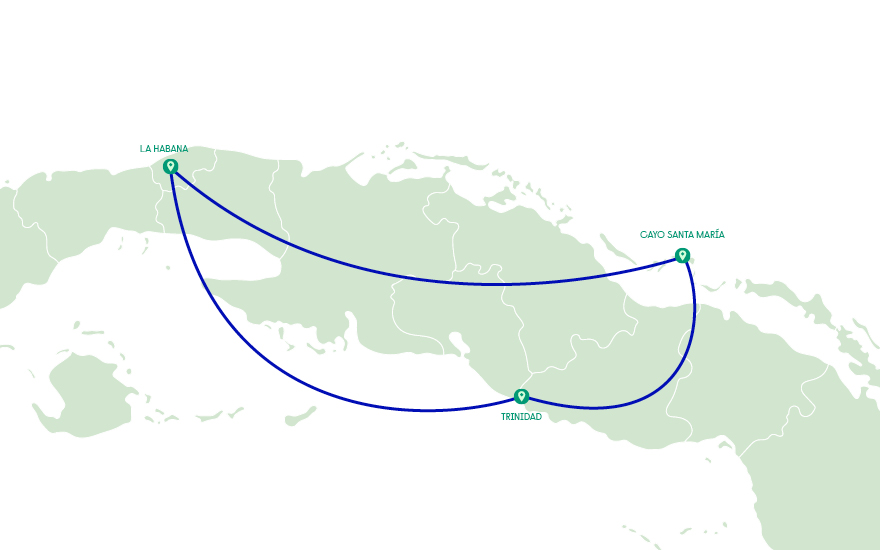 Está pronto para aproveitar as suas férias em Cuba? Oferecemos-lhe aqui uma viagem a Cuba na qual irá combinar três lugares muito especiais: Havana, Trinidad e Cayo Santa Maria. Encantadora arquitetura medieval, monumentos, praças, igrejas, edifícios emblemáticos e praias de sonho esperam por si nesta viagem a Cuba. Aproveite esta excelente oportunidade e prepare a sua mala para dias inesquecíveis.
